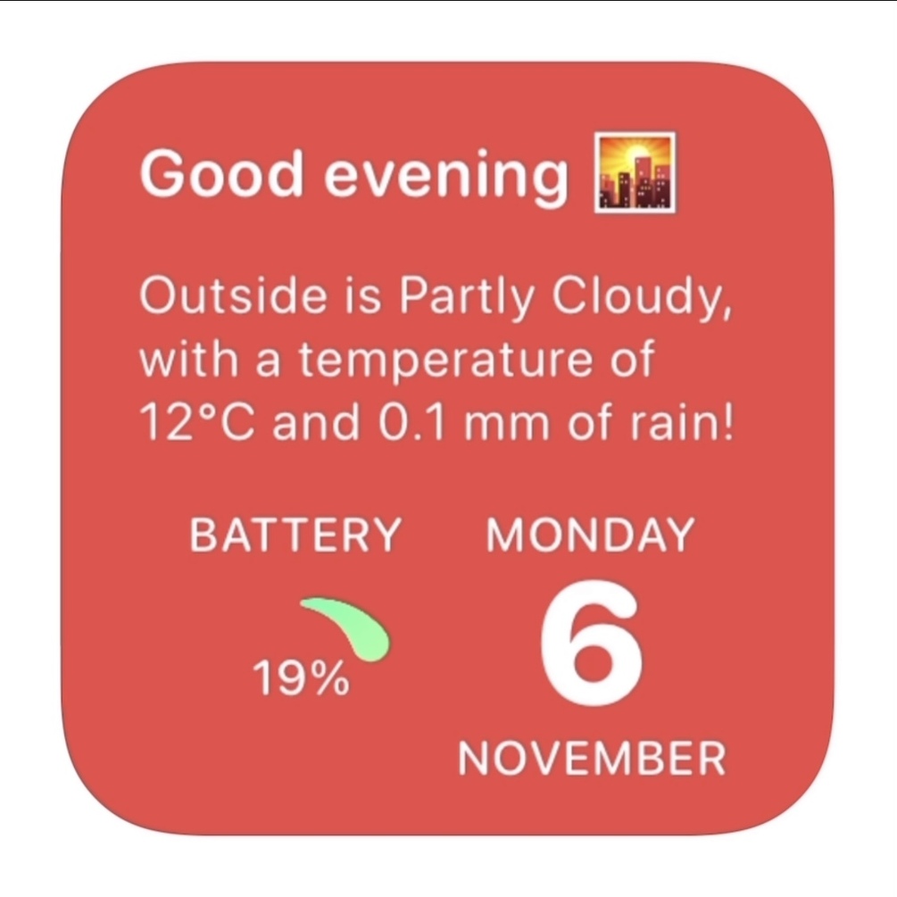 "Calendar 2.0" is a widget in which I wanted to implement Javascript to be able to create something creative! During the day you can see the battery , the weather and the day, between one day and another you can see the passage through the calendar between one date and another. Hope you like it! If you have any requests about it or something go wrong with the widget you can write me on reddit u/matti087, I will try to reply as soon as possible! The widget is now free, any donation will be more than welcome!😊 (The language is set to english)